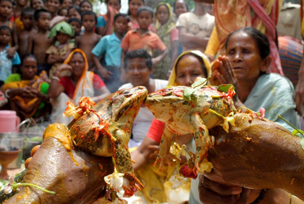 Daft! 10 Shocking and Bizarre Traditions in India Editorial Team March 3, 2016 No Comments 8.Frog weddings Advertisement Source-nydailynews Frog weddings are celebrated in order to satisfy the rain gods. These kinds of animal weddings are quite famous in Maharastra as well as Assam. Prev8 of 10Next