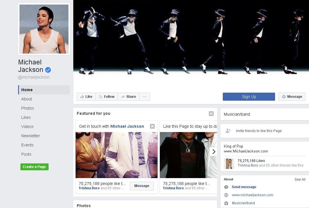 Entertainment 20 Most Liked Facebook Pages Saloni Bararia April 17, 2017 No Comments 8. Michael Jackson Advertisement Legends don’t die even after their death. Michael Jackson proves to be the King of Pop even after dying with 75,275188 likes. Prev13 of 20Next