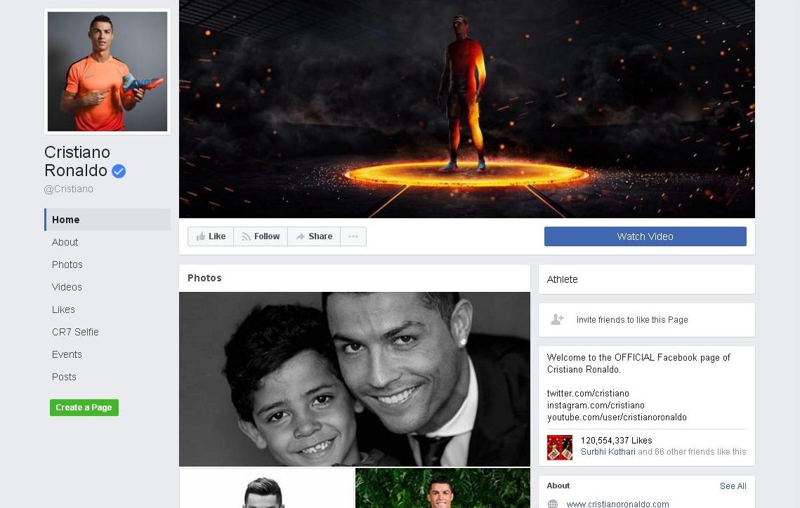 Entertainment 20 Most Liked Facebook Pages Saloni Bararia April 17, 2017 No Comments 2. Cristiano Ronaldo Advertisement Cristiano Ronaldo, needs no explanation to take the 2nd place on the list with a herculean pool of 120,554,337 likes. Prev19 of 20Next